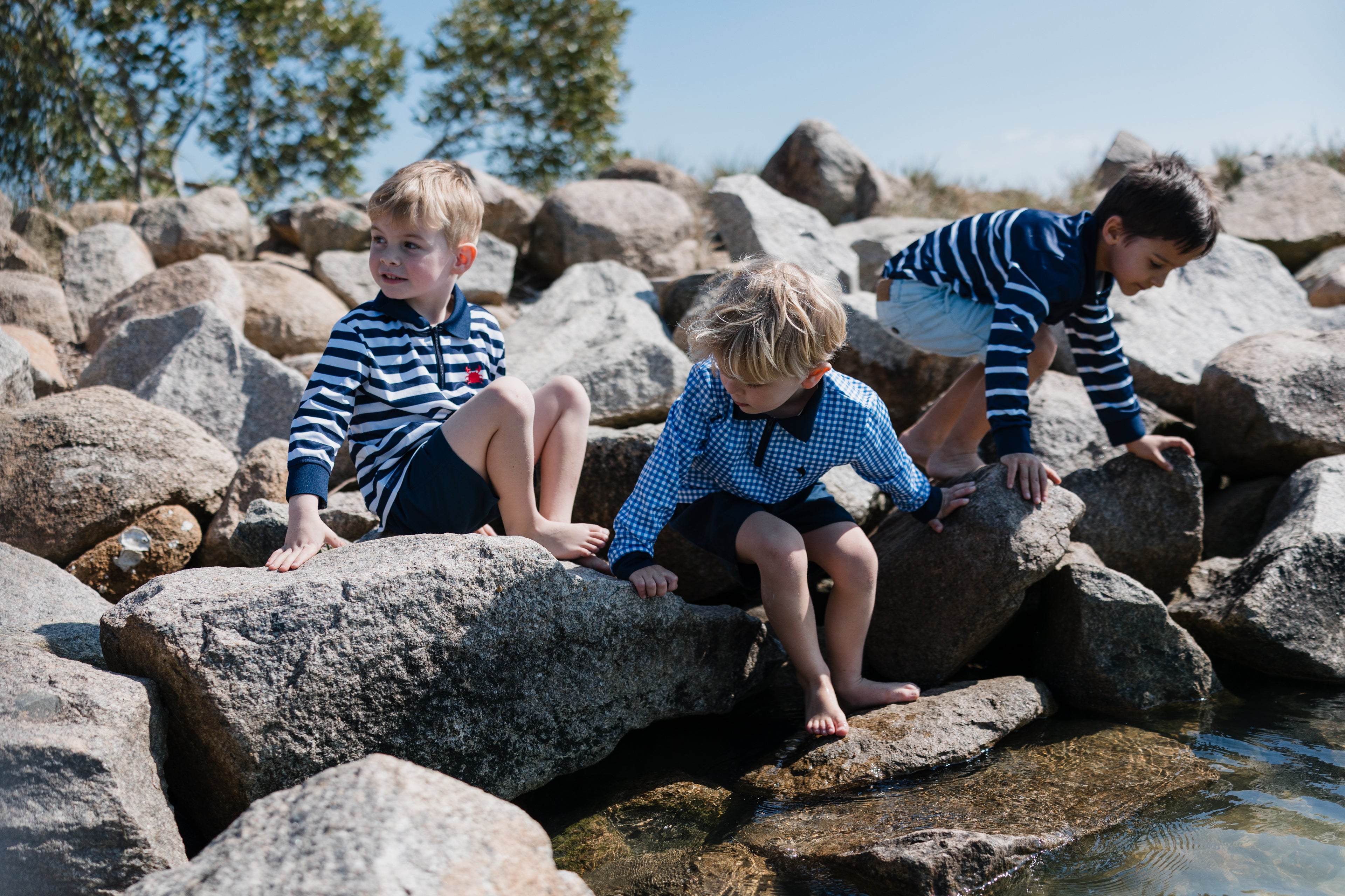 Then there’s Jack — the cheeky, beach-loving second child who’s all in for the first splash of the day… and completely done the second he's out of the water. Cold, clingy swimmers? No thanks. Waiting for them to dry? Not a chance. So every beach trip turned into a constant costume change packing extra swimmers and tees to get through the day. The backup shirt? Never SPF or quick-drying and usually straight from the playground drawer. I wanted a practical, sun-smart long sleeve shirt, that looked stylish beyond being on the water and protected him after the swimmers came off.