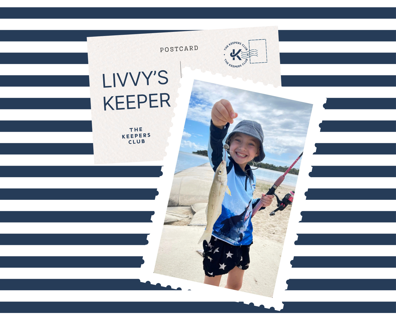 The Keepers Club began with Livvy — The bright blue-eyed first born, with a big love for fishing, just like her dad. From the boat to the beach, the river to the jetty, she’d be there with her lucky pink rod, reeling in fish from the age of three. But in every photo of her proud moment with her ‘Keeper’ , she was wearing a loud, fish covered shirt — practical, yes. But it never quite matched the magic of the memory or looking as stylish as her regular clothes.